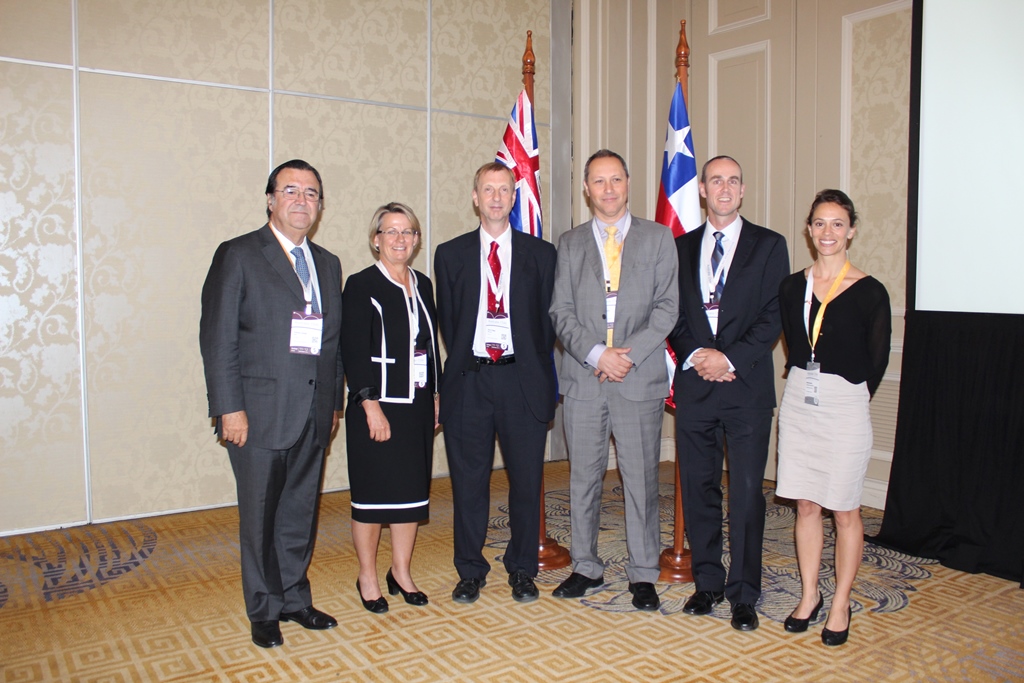 Conel tema “Mejorando el uso del agua y avanzando hacia políticas sustentables”, elDirector General de Aguas (TP) del MOP, Carlos Estévez, participó del ForoAustralia-Chile Plataformas del Pacífico, realizado los días 11 y 12 dediciembre en el Hotel Ritz-Carlton.