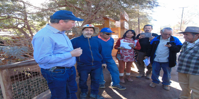 Dirigentas de la Asociación Atacameña de regantes del río San Pedro y del río Vilama, se reunieron el 2 de marzo en Santiago con el Director General de Aguas, Carlos Estévez, con el objeto de manifestar sus impresiones con respecto a la reforma al Código deAguas que se está tramitando actualmente en el Congreso y además, requerir herramientas para realizar denuncias en materias de fiscalización para el recurso hídrico.