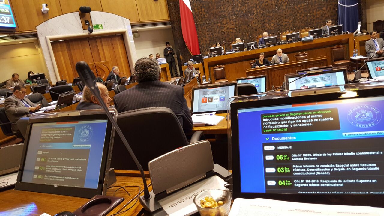 Hoy miércoles11 de enero, la sala del Senado aprobó en general, en votación por unanimidad, con 32 votos, el proyecto de ley Boletín 8149-09, que introduce modificaciones al marco normativo que rige las aguas en materia de información, fiscalización y sanciones, reforzando las atribuciones de la Dirección General de Aguas (DGA) en estos aspectos.